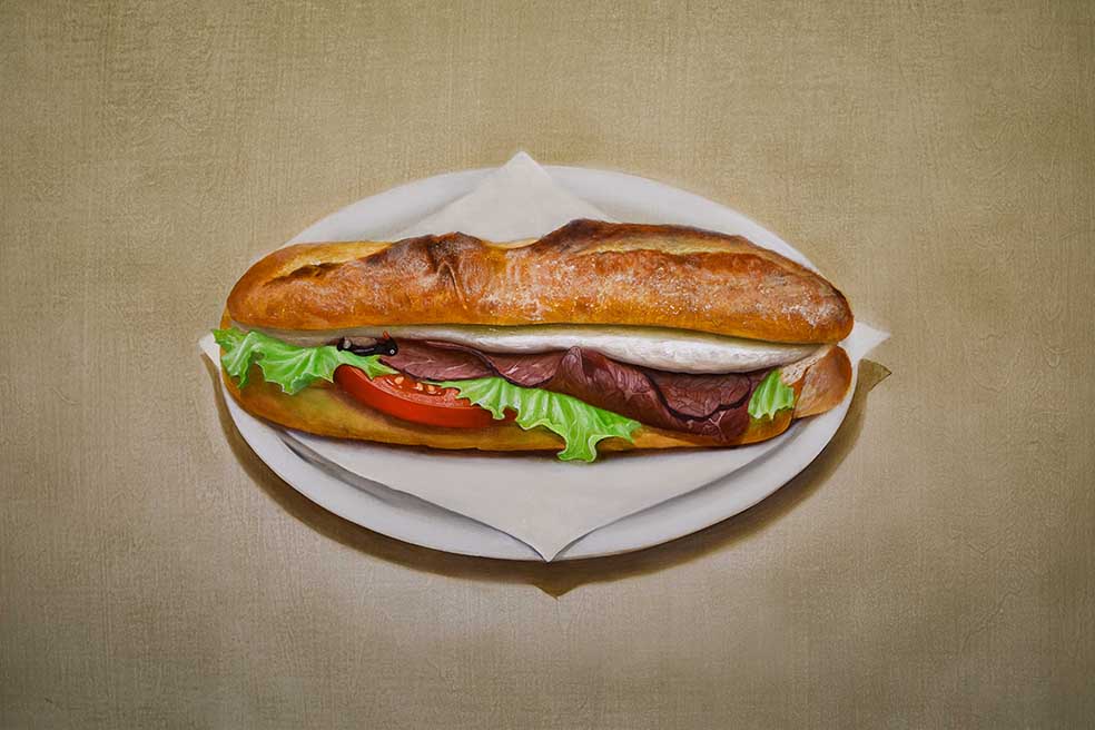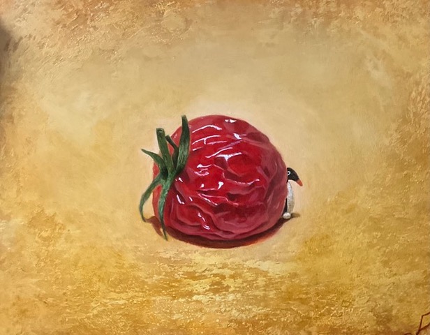 中村文俊の作品の細部まで描き込まれた風景には、それとしては普遍的であるのにも関わらず、どこか不安を喚起する事象、明らかに不穏な出来事、しかしまた、普通とも思える光景が交錯し、一つの画面の中で日常のあらゆる事象が多重奏を奏でています。それが不協和音に終始しないのは、中村文俊の卓越した画力と、ペンギンに象徴されるユーモアを交えた表現によるものと思われます。筆致がたどれないほど緻密に描きこまれた、中村文俊の沁みわたる絵画世界をおたのしみください。